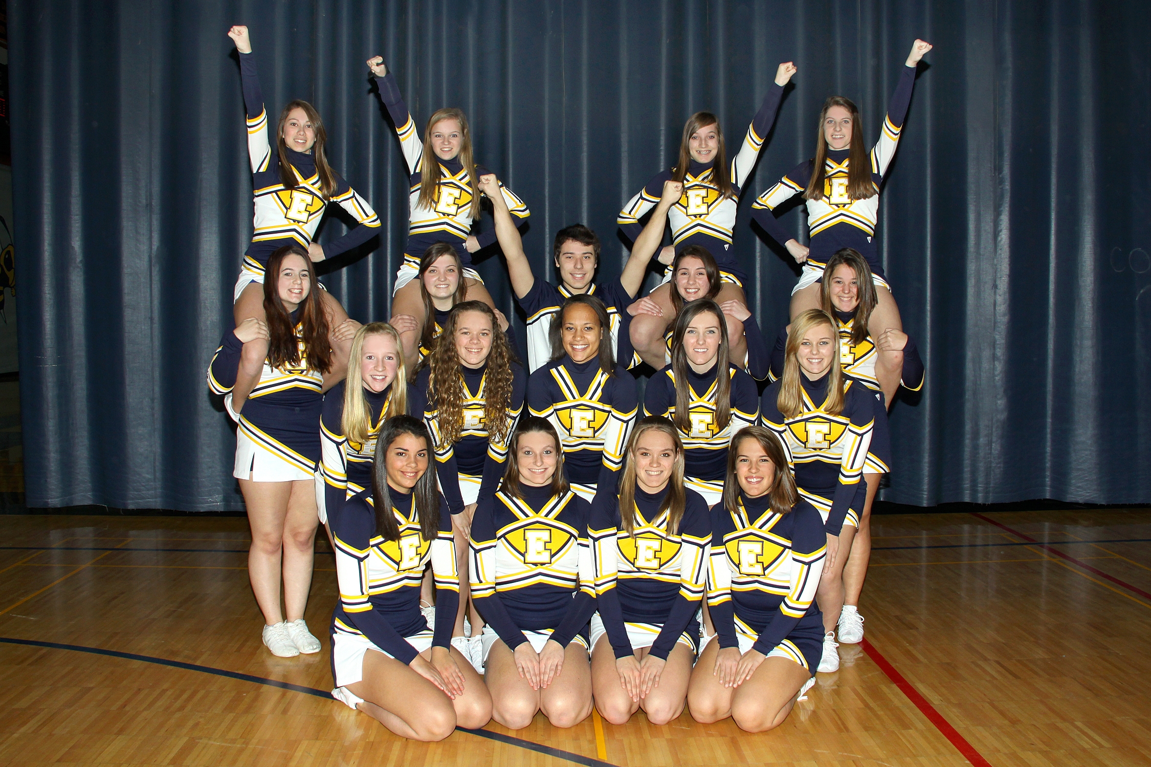 | Sat | 02/11/12 | CENTRAL VT CHEER COMPETITION | RUTLAND M.S. - KEEFE GYM | 03:00PM | EHS 1st place large school varsity! Top Gun Stunts 1st place: Amy Yandow, Frankie Sands, Steph Fuchs, Kally Tanguay, Kasandra Wiggett Top Gun Stunts 2nd place: Katie Weed, Lisa Ashley, Caitie Sands, Sianay Chase, Mikayla LeBlanc Top Gun Tumbling 2nd place: Siany Chase. 3rd place: Kally Tanguay Top Gun Jumps 2nd place: Emily Dowman | ||